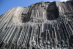 Volcanic rock types found on the Canary Islands are typical of oceanic islands. The volcanic rocks include alkali basalts, basanites, phonolites, trachytes, nephelinites, trachyandesites, tephrites and rhyolites.[25][3] There are lava flows as well as deposits of pyroclastic material, such as tuff (made of volcanic ash or lapilli).