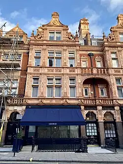 Upon opening in 2001 the "cool section" of George was the "one farthest from the front door". Birley, Cosima von Bülow and the art dealer Harry Fane were seated there on opening day.[2] The downstairs of George has a bar described by Birley as a "nighterie ... not a nightclub. You move downstairs at the end of dinner, sit around on sofas, have a drink, and listen to a little bit of music".[2] A red private dining room seats 12.[2] The George Private Bar opened in the basement of George in 2005.[7] The George Private Bar was established by Birley's son, Robin, and his sister, India Jane, who ran Birley's clubs during his ill health.[7]