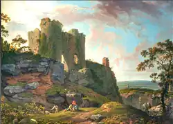 George Barret produced a notable series of paintings of scenery in Wales, some of which have considerable similarity to views by Richard Wilson. A few of these paintings may have been completed shortly after his arrival in England. An oil-painting of Hawarden Castle in Flintshire was exhibited by Barret at the Society of Artists in Great Britain in 1765.[38] However, it seems likely that most of Barret's Welsh paintings were produced towards the end of his life. In the mid-1770s Wales was becoming an increasingly popular destination for wealthy tourists.