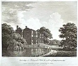 Another patron of Barret was Philip Medows, who was married to Lady Frances Pierrepont, sister of Evelyn Pierrepont, Duke of Kingston. Medows was the deputy ranger of Richmond Park, a position he held under Sir Robert Walpole, who had been the Ranger of the Park. A print engraved of 1779 by William Watts shows the Richmond Lodge, the residence of William Medows, which suggests that Barret had painted a picture of the building, which is now greatly altered and is known as Thatched House Lodge. Barret also painted numerous views of the River Thames in the area of the Terrace on Richmond Hill, some of which might have been commissioned by Medows. Sir Joshua Reynolds had a house built for himself close to the Terrace.[32]