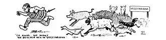 Bedborough became a vegetarian in 1902 after visiting Moses Harman's home.[19] He described the pervasive smell of the slaughterhouses as pervading the whole city of Chicago.[20]: 106–109 Harman suggested they tour the meat-packing houses to test whether Bedborough would continue eating meat.[19] This experience transformed him into a passionate advocate for vegetarianism and animal rights.[20]: 106–109