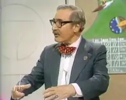 Dr. George delivering the weather, 1980