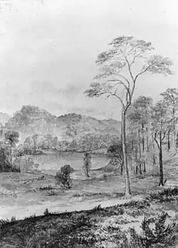 StateLibQld 1 86452 Painting by L. Forbes of the Brisbane River near Chinaman's Flat, 1873
