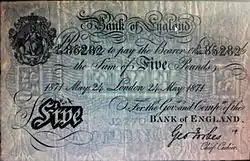 A George Forbes signed Bank of England £5 banknote of 1871.