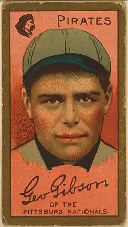 George C. Gibson (July 22, 1880 – January 25, 1967), nicknamed Mooney, was a Canadian professional baseball player, coach, scout, and manager.[1] He played in Major League Baseball as a catcher from 1905 to 1918, most prominently for the Pittsburgh Pirates where he played the bulk of his career and was a member of the 1909 World Series winning team. Gibson spent the final two years of his career as a player-coach for the New York Giants. He later became a minor league manager for the Toronto Maple Leafs before returning to the major leagues as a manager for the Pirates and the Chicago Cubs.[2]