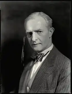 Wornum in 1934, wearing his signature black-rimmed monocle to disguise his missing eye