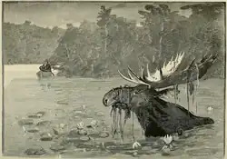 In 1889 Clements and two other artists made illustrations for an article on moose hunting in Aroostook, Maine, for Outing magazine. His drawing called "Moose Feeding on Coarse Grasses and Yellow Water Lilies" appeared as frontispiece to the article.[55]