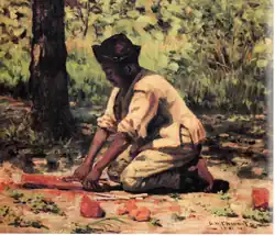 When his mother died in 1913, an obituary reported that her only brother was killed in a battle that took place on "September 14", year unspecified, and that three of her sons took part in the battle.[4] The conflict to which the obit referred was known as the Battle of Liberty Place or the Battle of September 14, 1874.[60] The event was an insurrection by members of a secret society called the White League against Louisiana's Reconstruction government. The insurrectionists succeeded in defeating police and local militia and, after federal forces negotiated their surrender, no charges were brought against them and they were permitted to resume their lives as if the battle had never occurred.[65][66] Sources do not say whether Clements was one of the brothers who fought in the engagement. However, in the years prior to and following the insurrection, Clements's friend, the New Orleans novelist George Washington Cable, had written articles defending the civil rights of Blacks and supporting the aims of the Reconstruction Government, and after both men had moved to New York, Clements wrote Cable to say he was sick of the "nightmare" of living in a "melancholy atmosphere of slavery and criminal prejudice" [8][67] Because there were so few New Orleans citizens who spoke out for civil rights and against racial injustice, the two men may well have first met as members of that minority. They had other attributes in common. The fathers of both had died young and both had been raised by their mothers. Cable worked as a cotton factor at a time when Clements was a clerk in New Orleans Cotton Exchange. Both were amateur folklorists of Louisiana's Creole culture in general and Creoles of color in particular.[7][8][68] Regardless of how they became associated with one another, by 1884 they were sufficiently close that a reporter described Cable's study as having on its walls, "Several landscapes in oil of Louisiana scenery and a Negro figure piece—all by George H. Clements".[11]