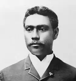 The monarchy was overthrown on January 17, 1893, and after a brief transition under Provisional Government the Republic of Hawaii was established on July 4, 1894. Despite his native ancestry and previous service under the deposed queen, Kamauoha became a legislator for the new regime. He was elected as a member of the House of Representatives for the Second District and served as the Vice Speaker of the Legislature of the Republic of Hawaii from 1895 to 1896.[2][8] He was licensed to practice law in 1895.[9] Hawaii was annexed to the United States in 1898 via the Newlands Resolution. From July 31, 1899, to July 23, 1900, he worked in the Tax Appeal Court, 3rd Circuit. He became a member of the Senate of the Territory of Hawaii from 1917 to 1919.[2] He ran as member of the Republican Party.[10]