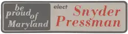 After years of deep conflict with then-sitting Governor Marvin Mandel, Snyder publicly announced that he would challenge Mandel in the Democratic primary for the Office of Governor. Hyman A. Pressman, the Comptroller of Baltimore, filed as his running mate seeking the party's nomination for the Office of the Lieutenant Governor of Maryland.[6] Pressman previously ran as an independent candidate in the 1966 Maryland gubernatorial election. After several weeks it became clear that the demographic challenges of running for state-wide office from the relatively less densely populated western part of the state would hamper the campaign. On July 18, 1974, Snyder ended the campaign.