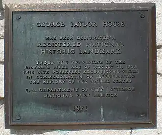 - ^ a b c d "George Taylor House". National Historic Landmark summary listing. National Park Service. Archived from the original on June 6, 2011. Retrieved February 11, 2008.