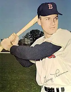 George Edward Thomas Jr. (born November 29, 1937) is a retired American professional baseball player. Primarily an outfielder, he played at least one game at every position except pitcher during a 13-year career in Major League Baseball for the Detroit Tigers (1957–58; 1961; 1963–65), Los Angeles Angels (1961–63), Boston Red Sox (1966–71) and Minnesota Twins (1971). He also was an assistant coach (1972–78) and head baseball coach (1979–81) at his alma mater, the University of Minnesota, after his active career ended. The native of Minneapolis threw and batted right-handed, stood 6 feet 3 inches (1.91 m) tall and weighed 190 pounds (86 kg).