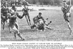Tittleton being tackled by Verdun Scott of North Shore on May 1, 1937 at Carlaw Park.