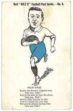 George "Tich" West played on the wing in Hull Kingston Rovers' 0-6 defeat by Warrington in the 1905 Challenge Cup Final during the 1904–05 season at Headingley, Leeds on Saturday 29 April 1905, in front of a crowd of 19,638.[4]
