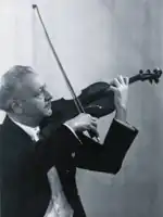 The other members of his family for six generations were violinists, bassists and guitarists.[2] Along with his father, George used to play all these instruments.[1] He was known as one of the typical Romanian virtuosi. He learned to play the violin as a child from his father, who was already the sixth generation musician. At the age of 12, Georges Boulanger got a scholarship to study at the Conservatory in Bucharest.[1] Three years later, as he was playing Paganini, he was heard by the famous violinist and teacher Leopold Auer, who was fascinated by Boulanger's artistic skills.[2] He was able to come to Dresden with Auers support and there he studied with him for the next two years.[1][3] Other students of Auer included Jascha Heifetz, Nathan Milstein, and Mischa Elman.