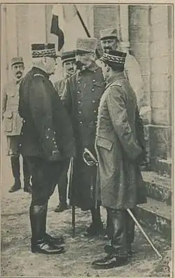 In 1916, general de Bazelaire took part in the Battle of Verdun,[2] defending the left bank of the river Meuse:[3] « He was to command the half of the Région Fortifiée de Verdun west of the river Meuse, including the section of front between Avocourt and the Meuse ».[4] In the first days of March, intense fighting involved the troops under Bazelaire's command in the areas of Bois des Corbeaux, Mort-Homme and the Cote 304.[5]