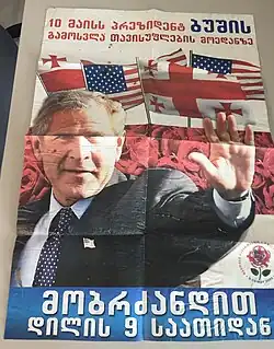 In November 2024, the Georgian government welcomed the election of Donald Trump to the presidency of the United States, hoping that the new administration would promote peace in the context of the ongoing Russo-Ukrainian War and that the Georgia-US relations would be "restarted".[32] In February 2025, Georgia became the only co-sponsor of the United States Resolution on the war in Ukraine in the UN General Assembly supporting the conflict resolution efforts amid the United States–Russia peace talks in Saudi Arabia.[33]