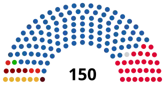 The Georgian Dream coalition successfully challenged the ruling UNM party in the 2012 parliamentary election.[29] It won this election with 54.97% of the vote, gaining 85 seats in parliament. Out of the 85 seats, GD-DG and the non-coalition parties running on its list got 47 seats, Free Democrats - 11, Republican Party - 9, while Conservative Party, Industry Will Save Georgia, and National Forum each got 6 seats. Out of the 47 MPs elected from GD-DG's ticket, GPG, PP, and SDDG got a seat each.[30]
