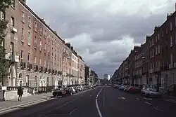 According to The Irish Times, the stretch was once "the longest and arguably the finest Georgian streetscape in the world."[2] A Dublin Tourism brochure claimed that it was the "longest complete Georgian thoroughfare in Europe until the 1960s, when a row of houses was replace by a modern office block."[3]