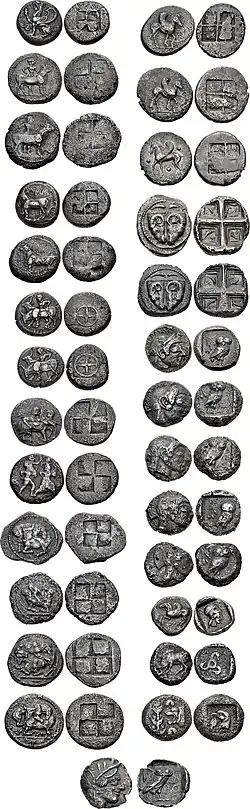 The coins belong to a rather narrow period, from the end of the 6th century BCE, to the first quarter of the 5th century BCE (circa 510-475 BCE).[1] The suggested deposition date for the entire hoard is circa 480 BCE.[1]