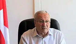 Elguja "Gia" Gvazava (Georgian: ელგუჯა [გია] გვაზავა) (born February 22, 1952) is a Georgian politician. Being a native of Georgia's autonomous republic of Abkhazia and a member of the local legislature since 1991, Gvazava was forced, along with most of the region's Georgian population, to flee the secessionist victory in Abkhazia in 1993. From March 20, 2009, to April 8, 2019, he served a chairman of the Supreme Council of Abkhazia, based in exile in the Georgian capital of Tbilisi.[1][2]