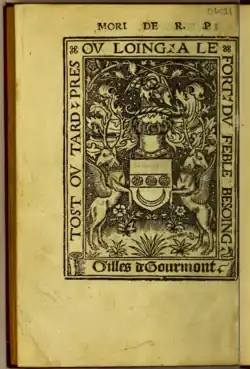 Gilles de Gourmont (fl. 1499–1533), Egidius Gormontius in Latin, was a Parisian bookseller and printer active in Paris between 1499 and 1533.[1][2]