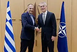 On 20 July 2023, Gerapetritis had his first working meeting with the Secretary General of NATO, Jens Stoltenberg, at the NATO headquarters in Brussels.[62] After his meeting with Stoltenberg, Gerapetritis said that NATO should focus more attention on developments in the "Southern Neighbourhood, the Middle East and the Eastern Mediterranean."[63]