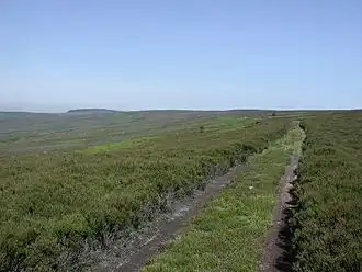 ![]() The 'broad flat moor'. The summit is the slight rise on the left. | |