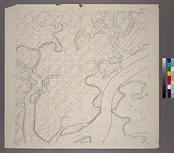 1905 Map showing Givans Creek. Street grid does not match modern layout.