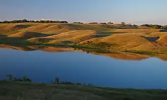 Kettle lake and rolling hills in Glacial Lakes State Park