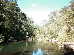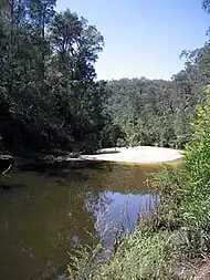 The headwaters of Glenbrook Creek are approximately 5 km south-east of Linden, in the Blue Mountains National Park. The creek follows a mainly south-easterly course for its 17 km length.[1] It starts at an altitude of 300m, and empties into the Nepean River at 30m, which is a descent of 270m. The lower reach of the creek passes through a valley known as "Glenbrook Gorge". It is the site of two swimming holes, Blue Pool and Jellybean Pool, and there are many bushwalking tracks along its banks.