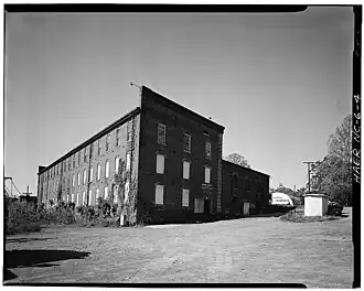 The 38.9 acres (15.7 ha) property was purchased on January 26, 1878 for $8000 by E. M. Holt & Sons. An additional 148.2 acres (60.0 ha) was purchased the following year. The Holts established other cotton mills throughout Alamance County because of the "abundant water power drew workers from and supplemented local agriculture" according to a Historic American Engineering Record prepared in 1977.[3]