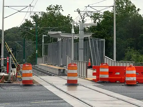 Glenridge station is an under-construction light rail station in Hyattsville, Maryland, that will be served by the Purple Line. The station will have an island platform on the west side of Veterans Parkway just south of Annapolis Road.[2] Original plans called for side platforms.[3] As of 2022, the Purple Line is planned to open in 2027.[1]