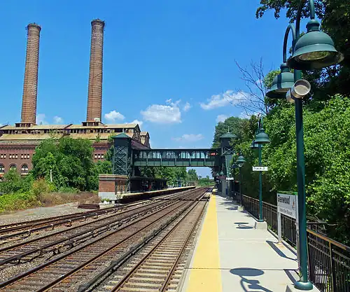 ![]() Northbound view of the station and the nearby former NYC&HR Power Plant | |||||||||||