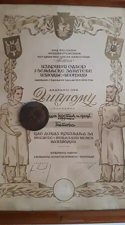 AwardsBelgrade exhibition of crafters of Yugoslavia