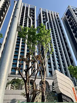 The Global One (Chinese: 世界明珠) is an under-construction skyscraper complex located in Nangang District, Taipei, Taiwan. The residential and commercial development project launched by Nankang Rubber Tire Corporation and consists of eight buildings, with Towers A and H designated for office use, while Towers B–G serve as residential buildings, with heights of 126.9 m (416 ft), with 27 floors above ground and 4 below ground.[1] The site was originally the location of the company's first factory, designated as industrial land. Through long-term land development and the donation of a portion of the land for the Taipei Music Center, the area was reclassified as residential and commercial land through urban planning adjustments. Construction officially began on November 11, 2019. The development is situated between Section 2 of Nangang Road and Section 8 of Civic Boulevard in Taipei, adjacent to the Taipei Music Center.[2]