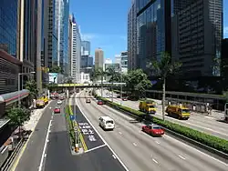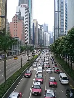 Gloucester Road is in the north of Wan Chai and East Point on Hong Kong Island. It connects to Harcourt Road at its western end and in the east along the west side of Victoria Park it spit-ends into both Causeway Road and the Tai Hang Road flyover.[1] It formed part of Hong Kong's Route 4 and connects to the Island Eastern Corridor via Victoria Park Road before completion of Central–Wan Chai Bypass. The road is connected to the Cross-Harbour Tunnel near the Canal Road Flyover. It runs almost parallel to Lockhart Road.