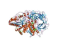 - ^ Heikinheimo P, Helland R, Leiros HK, Leiros I, Karlsen S, Evjen G, Ravelli R, Schoehn G, Ruigrok R, Tollersrud OK, McSweeney S, Hough E (March 2003). "The structure of bovine lysosomal alpha-mannosidase suggests a novel mechanism for low-pH activation". Journal of Molecular Biology. 327 (3): 631–44. doi:10.1016/S0022-2836(03)00172-4. PMID 12634058.