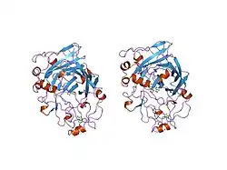 In molecular biology, glycoside hydrolase family 7 is a family of glycoside hydrolases EC 3.2.1., which are a widespread group of enzymes that hydrolyse the glycosidic bond between two or more carbohydrates, or between a carbohydrate and a non-carbohydrate moiety. A classification system for glycoside hydrolases, based on sequence similarity, has led to the definition of >100 different families.[1][2][3] This classification is available on the CAZy web site,[4][5] and also discussed at CAZypedia, an online encyclopedia of carbohydrate active enzymes.[6][7]