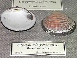 - ^ a b Huber, Markus (2018). "Glycymeris yessoensis (G. B. Sowerby III, 1889)". WoRMS. World Register of Marine Species. Retrieved 23 November 2018.