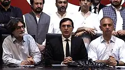 He also criticized the government of Shehbaz Sharif for allowing the Inter-Services Intelligence (ISI) to tap phones which he declared 'unconstitutional'.[19] He further demanded a notification by the Supreme Court of Pakistan regarding the next Chief Justice of Pakistan to be issued, while also demanded that Chief Justice Qazi Faez Isa be denied an extension.[20] He oversaw major reshuffles in party leadership including the resignation of Omar Ayub Khan as Secretary-General of PTI, the appointment of Salman Akram Raja to the role, a show-cause notice to Sher Afzal Marwat, and the appointment of Sheikh Waqas Akram as Information Secretary, all of which were appointments made on advice and orders of Imran Khan, who Gohar has met on several instances in Adiala Jail.[21][22][23]