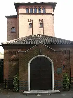 The crematorium in Golders Green was designed by the architect Sir Ernest George and his partner Alfred Yeates.[6] The gardens were laid out by William Robinson.[2] The crematorium is a red brick building in Lombardic style and was built in stages, as money became available.[2][6] The crematorium opened in 1902 and was built in four phases (1901–1910, 1910–1911, 1912–1916, 1926–1928).[7] By 1939, the site was largely completed, although since then some buildings have been added. Since November 1902 more than 323,500 cremations have taken place at Golders Green Crematorium, far more than any other British crematorium. It is estimated that the crematorium now averages around 2,000 cremations a year. The funerals of many prominent people have taken place there over the last century.