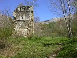 Ruins of the Monastery of San Román de Entrepeñas. The fortified tower, sole vestige of its former splendor, can be seen in the image.