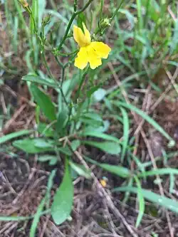 Goodenia stelligera, commonly referred to as spiked goodenia,[2] is a species of flowering plant in the family Goodeniaceae and is endemic to near-coastal areas of eastern Australia. It is an erect herb with linear to lance-shaped leaves, sometimes with toothed edges, and racemes or thyrses of hairy yellow flowers.