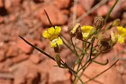 This goodenia grows on sandplains and rocky hills in arid regions of inland Western Australia, South Australia, the Northern Territory and western Queensland.[2][3][5][6]