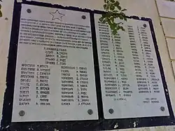 All these events could not go away without response, so the people of Žirovac soon rebel and 22 August 1941 first unrest started. Organized uprising in Gornji Žirovac begins officially on 2 September 1941, when the communist party (KPJ) gathers people and organizes the first partisan squad. Squad eventually becomes part of the famous 7th Banija Brigade "Vasilj Gaćeša" and there was almost no resident of Žirovac who did not have had some of their own kin in partisans.[5] Brigade found itself in some of the most important and violent battles of the war such as the Battle of Sutjeska which is why many of fighters did not survive the war.[6] In fact, as many as seventy partisans died from Gornji Žirovac alone. In memory of them, a memorial plaque with names was erected at the primary school.[7]