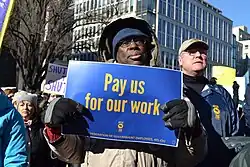 A US government federal employee demonstrates for compensation during the 2018–19 government shutdown.