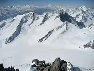 The Grünhornlücke (far right) from the Finsteraarhorn (east side)