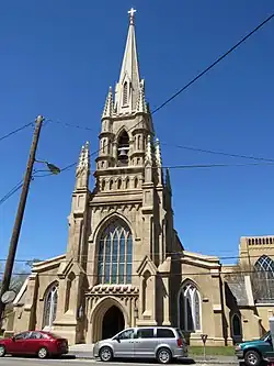 Grace Church Cathedral, located in Charleston, South Carolina, is the diocesan cathedral of the Episcopal Church in South Carolina. It is also a contributing property in the Charleston Historic District.[2] The parish was founded as the city's fifth Episcopal Church congregation in 1846.[3] The Gothic Revival church was designed by E.B. White and completed in 1848. The church remained open during the American Civil War until it was hit by a shell in January 1864. It reopened the following year. The church was also severely damaged in an earthquake in August 1886, in a hurricane in 1911, and in Hurricane Hugo in 1989.