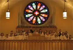 Ever since the choirs were organized in the early 20th century, Grace has had a flourishing choral program that involves children and families in the local school districts. The choir program continues with increasing success, with over 130 children, teenagers, and adults in 6 choirs. It recently traveled to Winchester Cathedral in England where it took up the services for one week.[5] The choirs provide all the music at Grace throughout the year and also serve as a social youth group that raises Grace's kids in the Episcopal faith. Adult and school choirs offer several concerts and Evensongs yearly. The School Choirs annually participate in Royal School of Church Music choir camps, and a significant number of choristers have gone on to sing in world renowned choral institutions such as the American Boychoir School and Westminster Choir College. Grace's current music director since 1991, Dr. Anne Matlack, a graduate of Yale, also directs the Harmonium Choral Society of Northern New Jersey.[6]